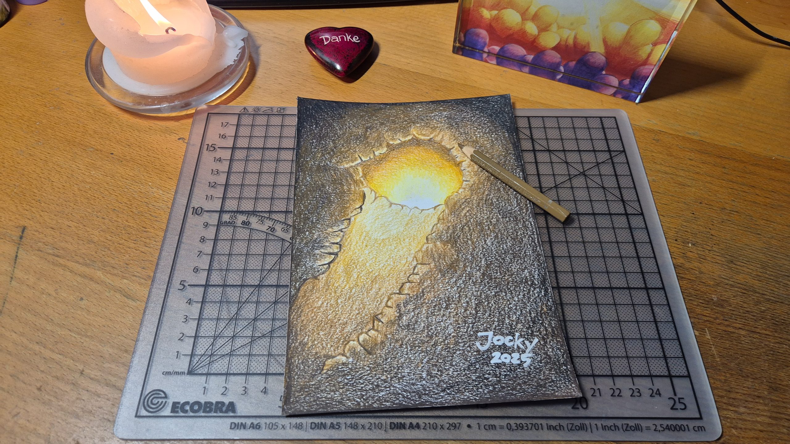 Ich stecke ja viel Zeit in diese Bilder, bete teilweise wochenlang für die Empfänger und arbeite dann die Bilder richtig aus. Bei meinem neuen Angebot möchte das Bild eher spontan gestalten und vielleicht nur das umsetzen, was mir in einer Lobpreiszeit kommt und das Kunstwerk auch weniger ausarbeiten.