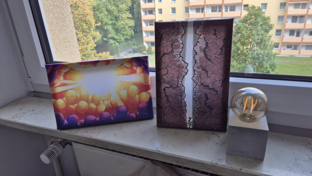 Ich stecke ja viel Zeit in diese Bilder, bete teilweise wochenlang für die Empfänger und arbeite dann die Bilder richtig aus. Bei meinem neuen Angebot möchte das Bild eher spontan gestalten und vielleicht nur das umsetzen, was mir in einer Lobpreiszeit kommt und das Kunstwerk auch weniger ausarbeiten.