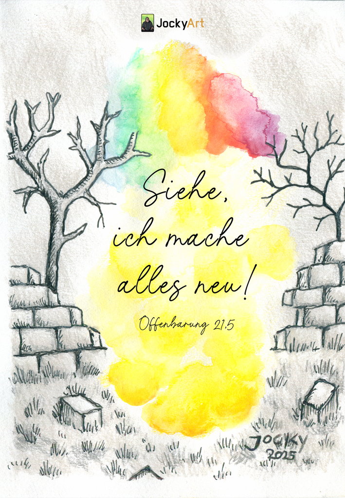 Die Empfängerin des Bildes hat sich sehr über das Bild gefreut und Tränen geweint, als sie es gesehen hat. Besonders hat sie der Bibelvers angesprochen, weil sie vorher Römer 8 auswendig gelernt hat und sich dachte, dass sie ein anderer Mensch wäre und etwas Neues beginnen würde, wenn sie das “Keine Verdammnis” glauben könnte.