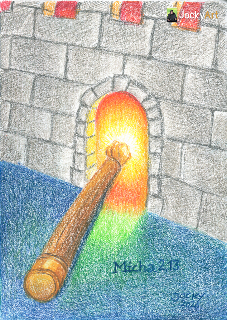 So wie es auch in Micha 2, 13: „Der Durchbrecher wird vor ihnen hinaufziehen; sie werden durchbrechen und zum Tor ein- und ausziehen; ihr König wird vor ihnen hergehen und der HERR an ihrer Spitze.“
