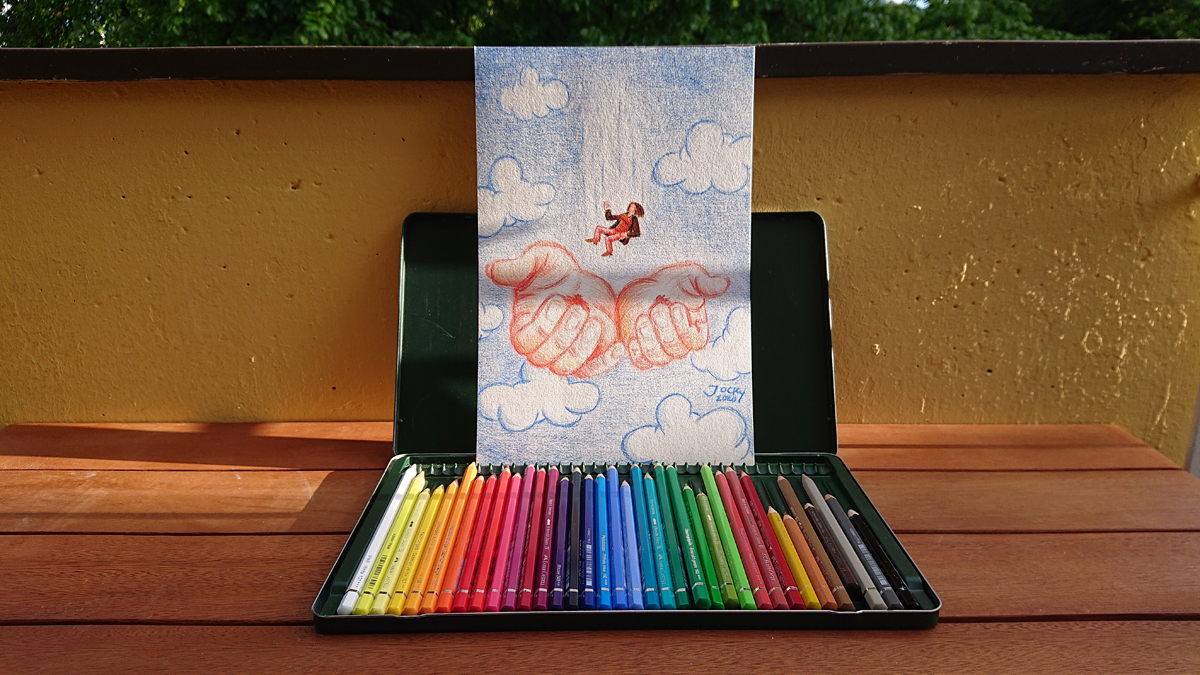 Das Bild ist auf einem hochwertigen Karton gedruckt, ähnlich wie das Originalpapier der Buntstiftzeichnung.