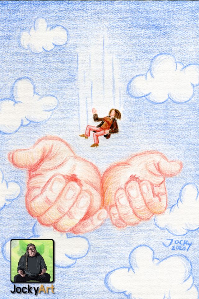 Als ich also für Dich gebetet habe, sah ich Dich im freien Fall. Du warst nur am Fallen. Mein Eindruck war, dass Du Dich so fühlst, dass Du endlos am Fallen in einen Abgrund bist und niemand diesen Fall aufhängt. Die Wahrheit war aber, dass Du eher durch einen wunderschönen bewölkten blauen Himmel geglitten bist und Dich die liebevollen Hände des Vaters aufgefangen haben. Es war also keine erschreckende, trostlose Situation, sondern eine beschützte tief geborgene!
