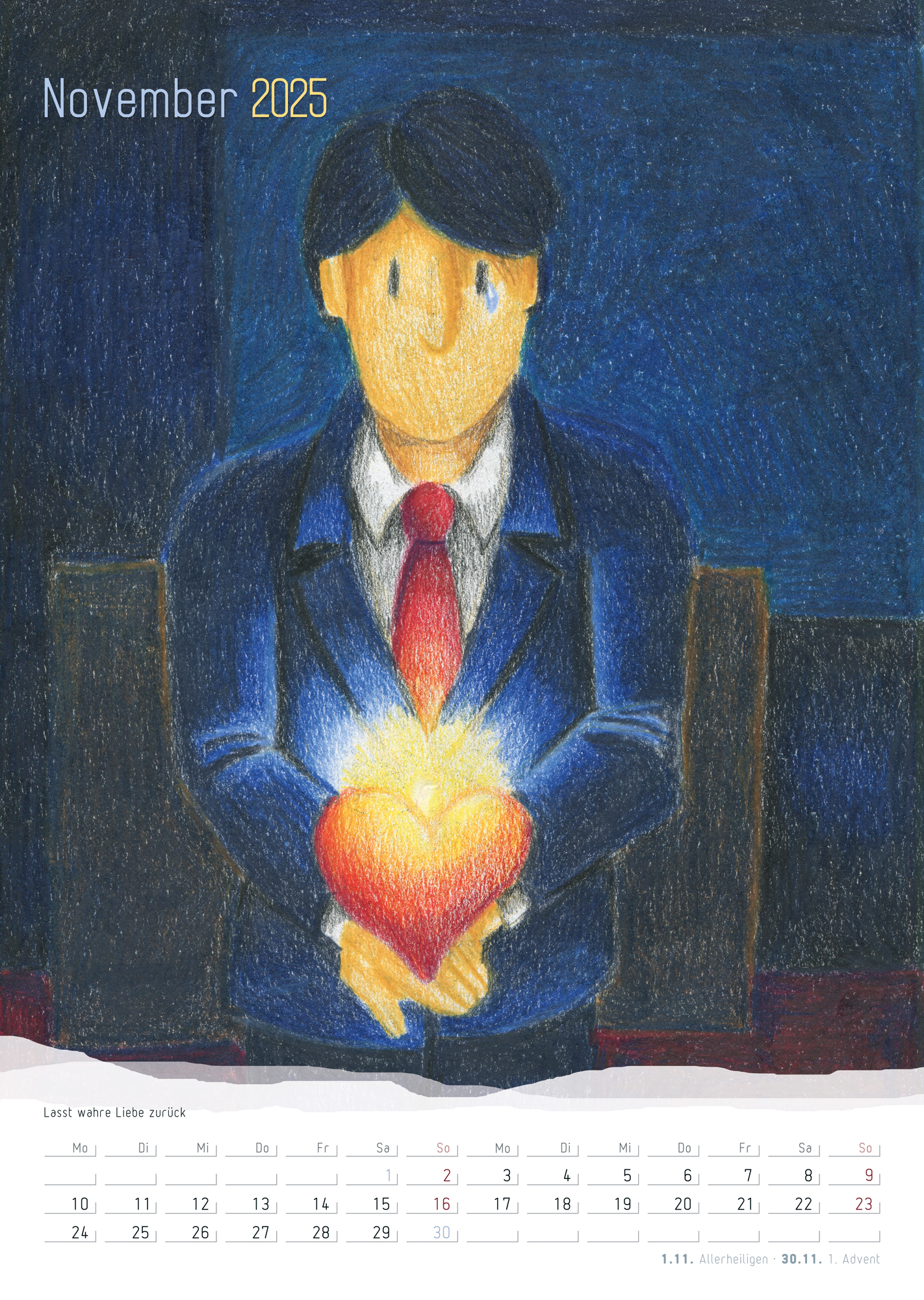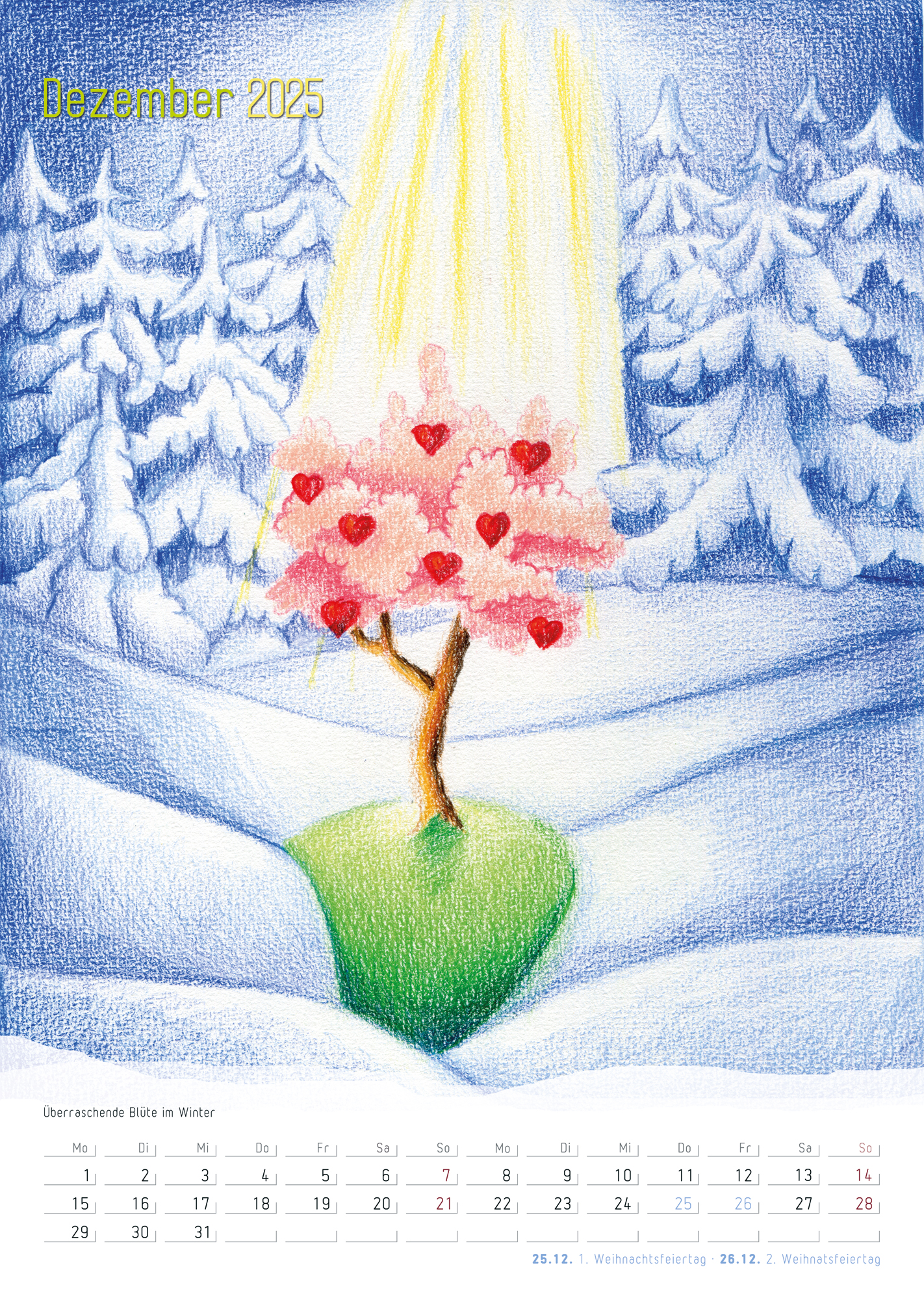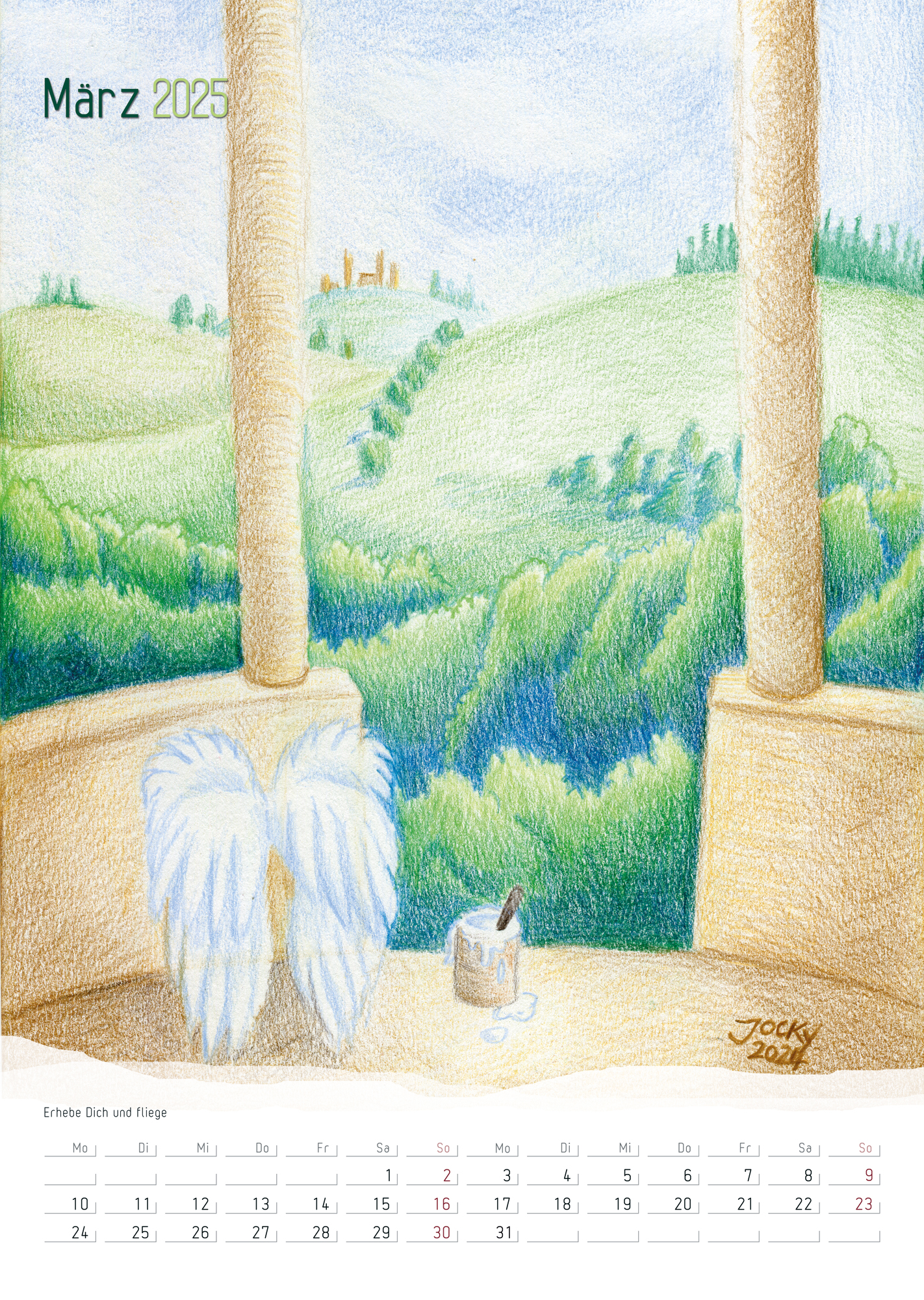 Auch für das Jahr 2025 habe ich einen Kunstkalender gestaltet, diesmal einen Wandkalender im Hochformat mit Spiralbindung