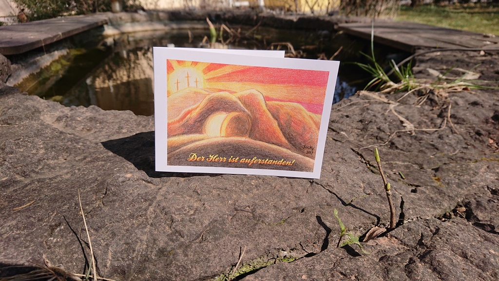 Wie jedes Jahr an Ostern hier noch einmal der Hinweis auf meine Ostergrußkarte, die den Schwerpunkt auf die österliche Botschaft legt: „Der Herr ist auferstanden! Er ist wahrhaftig auferstanden.“