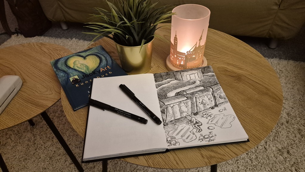 Seit einigen Jahren sind ja immer wieder einige Kurzgeschichten entstanden. Es gab einige Träume, die mich immer wieder sehr berührt haben. So bewege ich schon länger die Idee diese Geschichten in einem Buch zu veröffentlichen. Jede Geschichte so mit einer Illustration versehen werden.