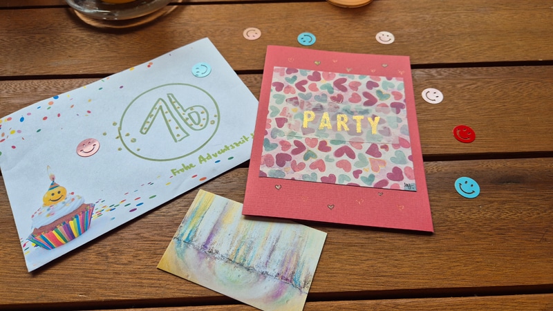 Als ich meine Karte für den Tag öffnete, an dem ich den Anwaltsbrief geöffnet hatte, kamen mir erst mal einige Smileys entgegen. Auf der Karte selbst stand dann in großen Buchstaben „PARTY“ und innen dann: „PARTY: feiere das Leben, feiere die Zeit, feiere das Leben mit MIR, feiere die Zeit mit MIR. So viel Grund zum Feiern, zum Freuen, zum Fröhlichsein mit MIR!“