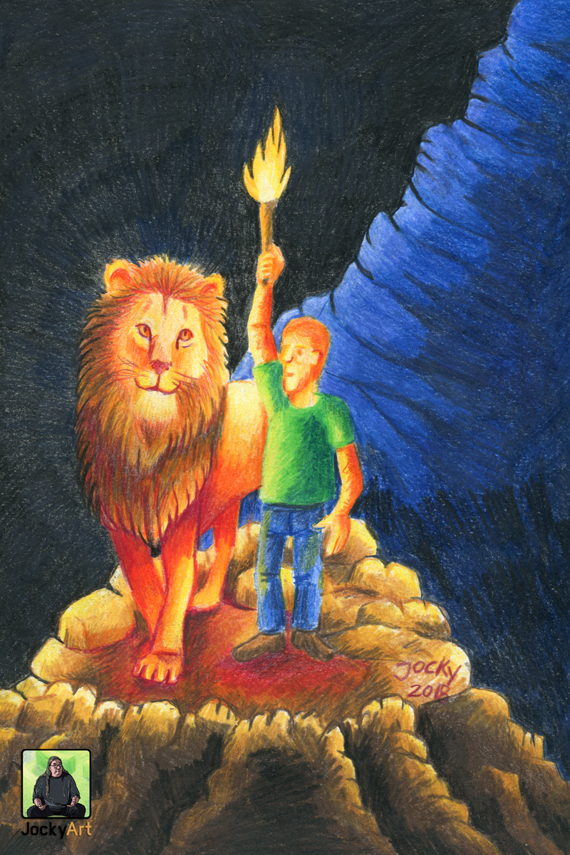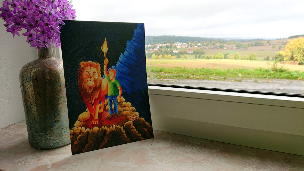 But I saw that this assessment was not correct at all. At his side I saw a mighty, strong lion, glowing brightly in the dark. He was by his side and had his back, stood by him. As Christians we know the symbol of the lion, the lion from the tribe of Judah. It stands for Jesus, who never leaves us alone.