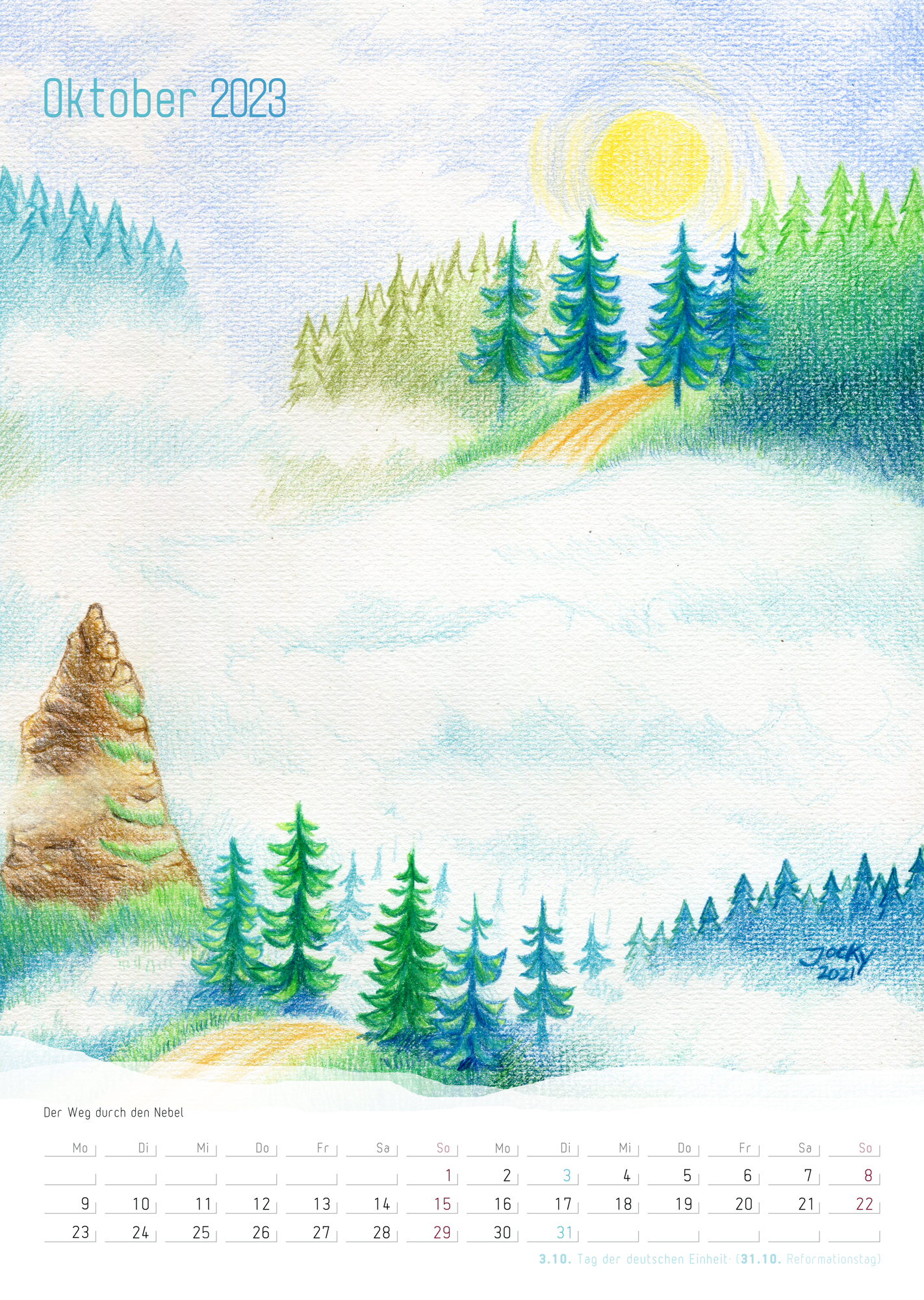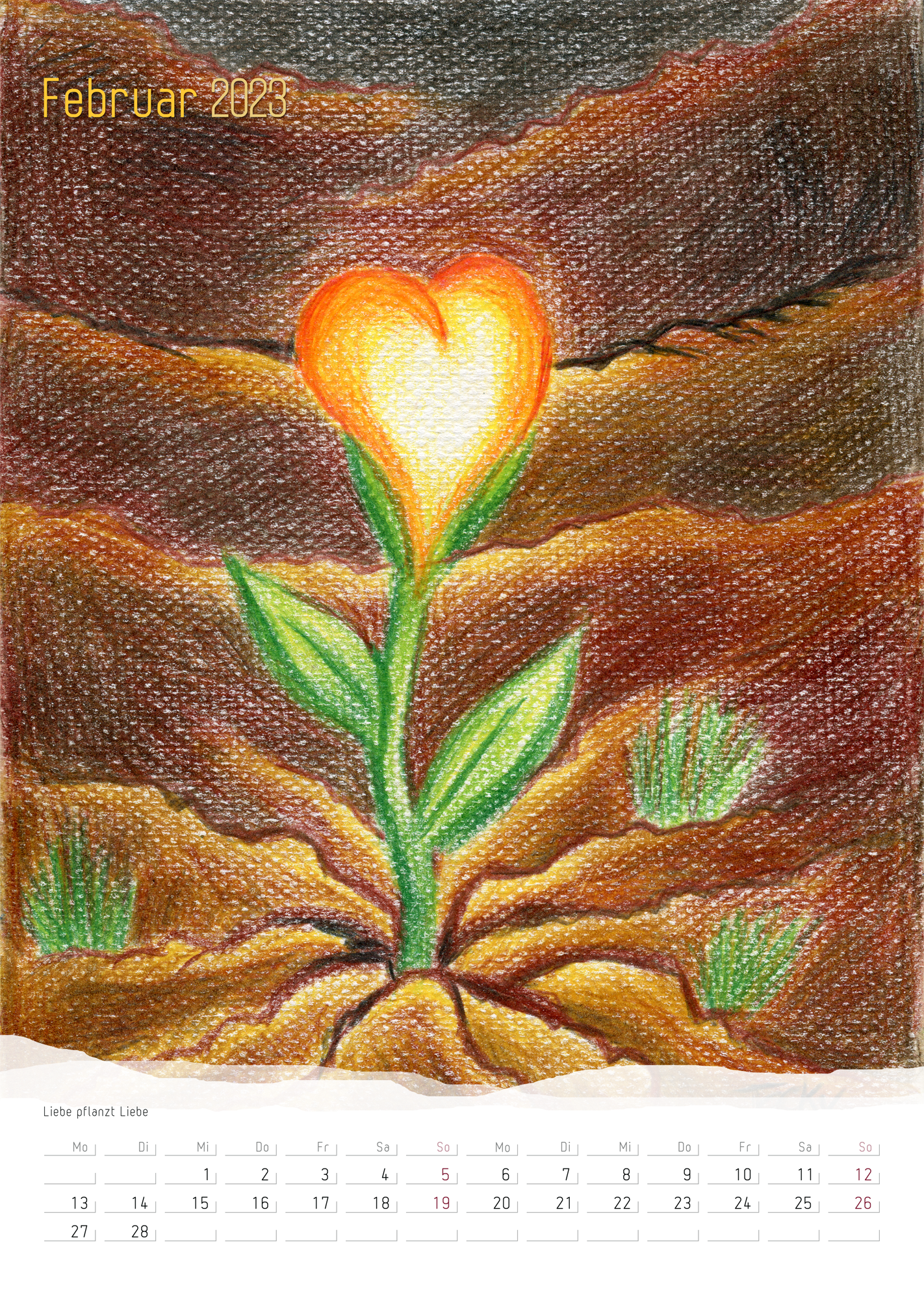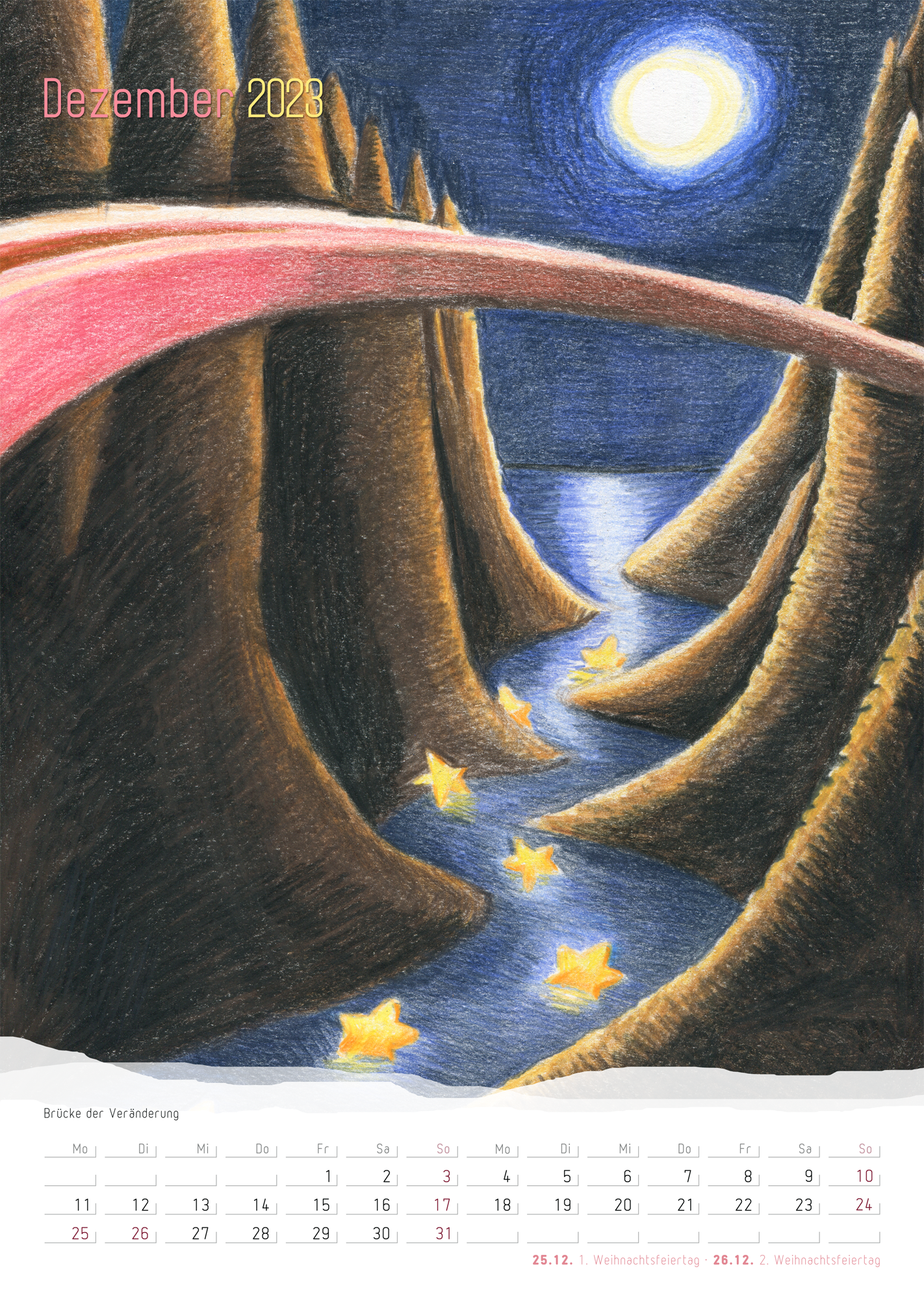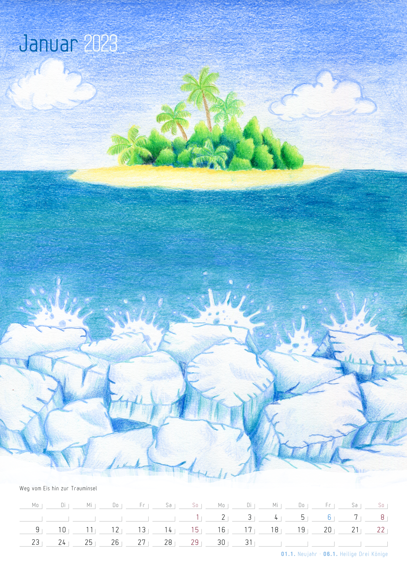 Für 2023 habe ich 2 Kalender mit meiner Kunst entworfen. Einen postcard calender (German) und einen wall calendar (German) im DinA4 Hochformat.