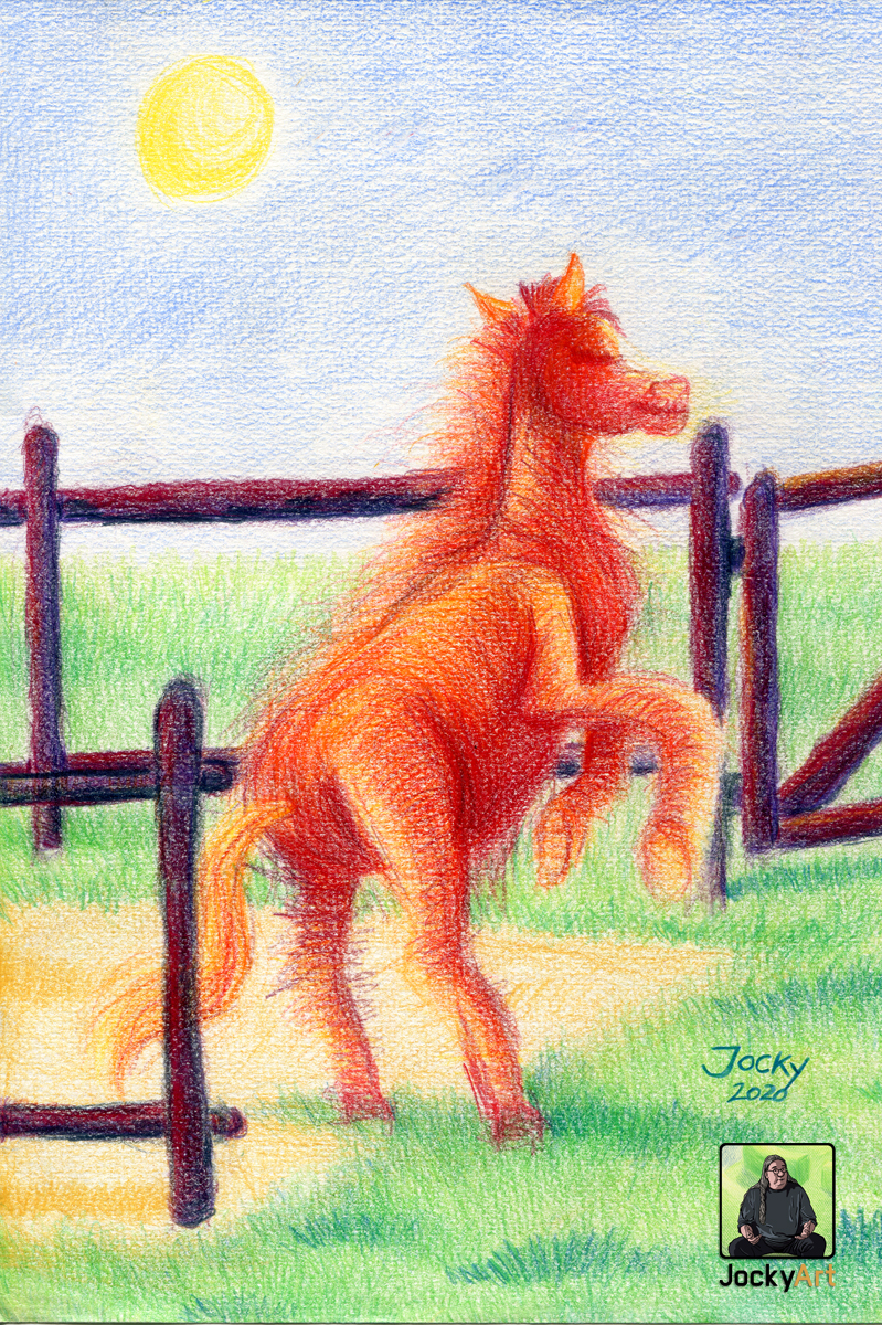 The original this picture was commissioned. As I prayed for the recipient of the picture, I got the impression of a horse standing on its hind legs, about to be released from its paddock. It was locked up there for a long time and has now finally been let out so that it could indulge its nature and temperament. It is destined for the freedom to run and roam wild, to express, to spread out...