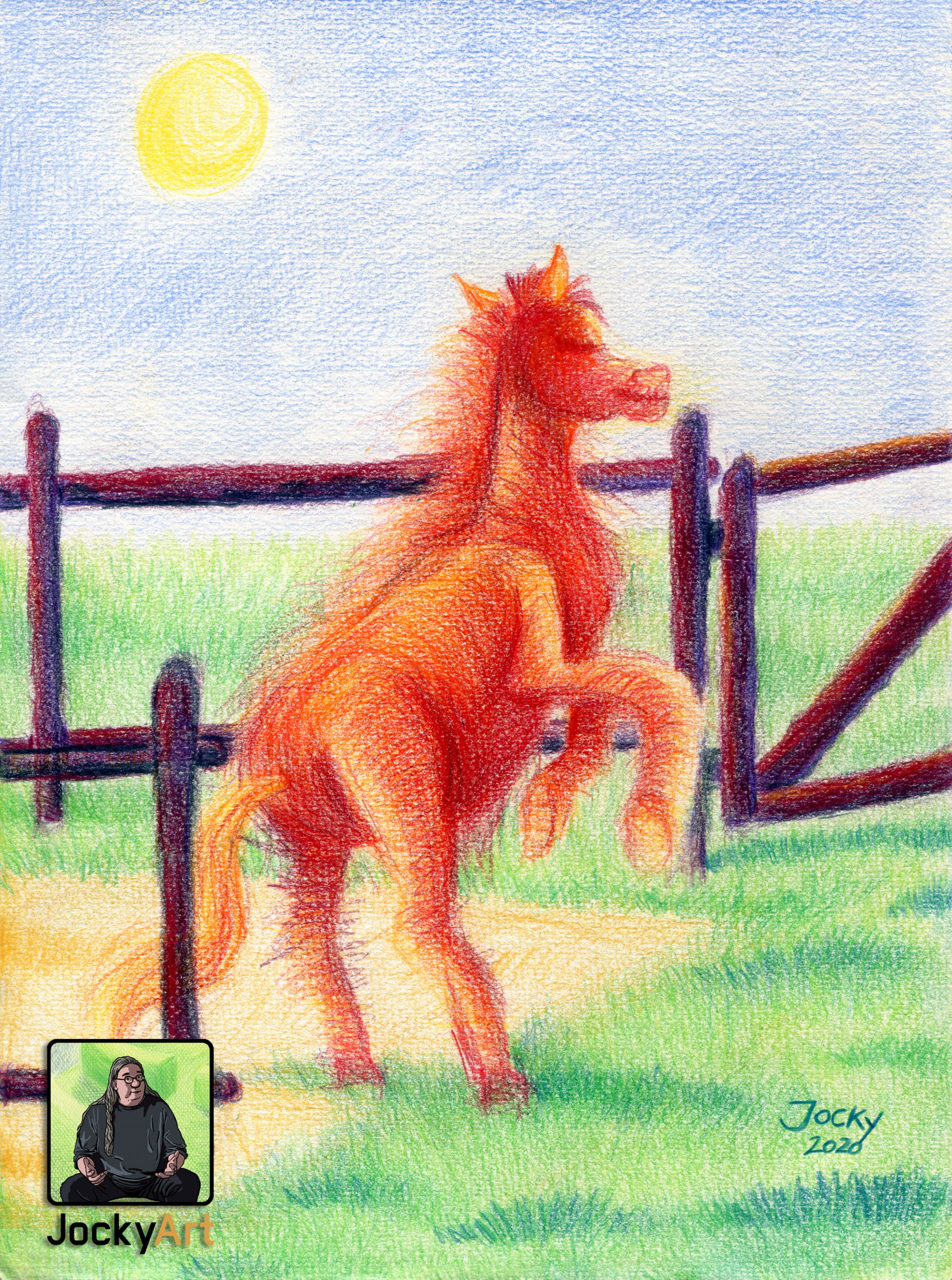 I made this picture as a personal prophetic picture for someone who just ordered an art print for herself. As I prayed for her, I got the impression of a horse standing on its hind legs and that was just released from its paddock. It was locked up there for a long time and has now finally been let out so that it could indulge its nature and temperament. It is destined for the freedom to run and roam wild, to express, to spread out...